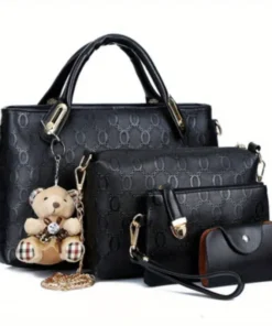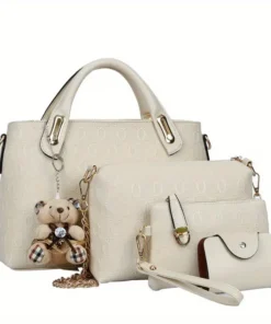 Conjunto de 4 peças de Bolsas de Mão Femininas, Bolsa Transversal Casual com Estampa de Urso, Bolsa de Ombro e Clutch, Bolsas de Senhora